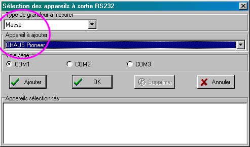 Raccorder la balance au port Com (Com1 ou Com2) de