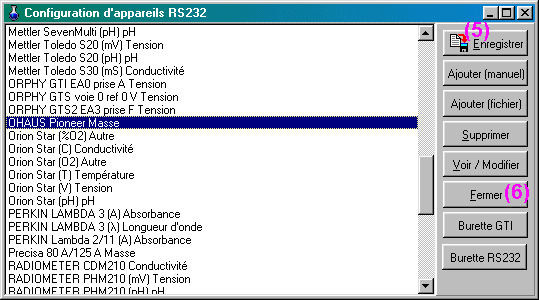 de REGRESSI pour appareils RS 232 indispensable ici (voir cédérom