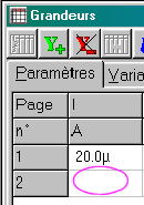 nouvelle valeur du paramètre d'intensité (fenêtre "Grandeurs",