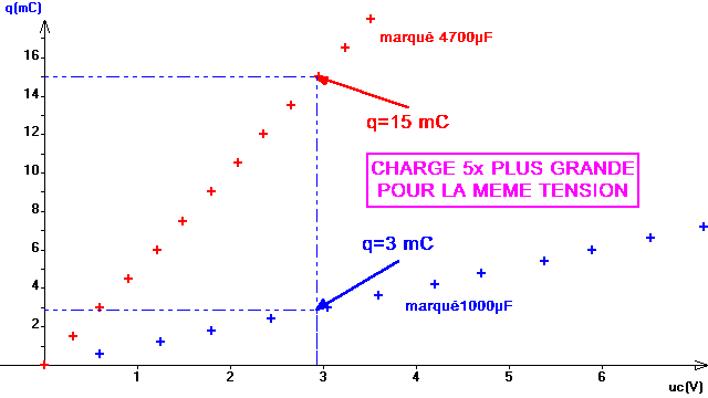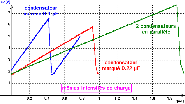 A intensité de charge identique, on voit qu'un condensateur de plus grande