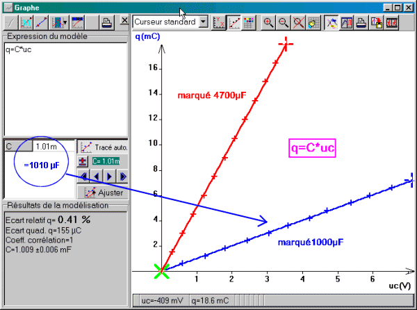 | rentrer d'abord dans le volet de modélisation l'expression: uc= (I/ C)*t