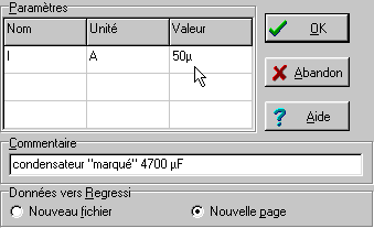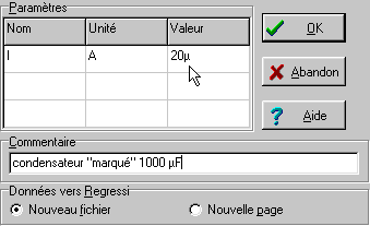 et à mesure (ou en fin d'expérience) dans Regressi. |