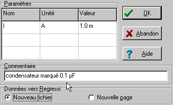 Demander alors une nouvelle acquisition dans Regressi par ,