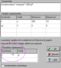 | on peut éditer le nom des variables, leur unité, etc. en double-cliquant