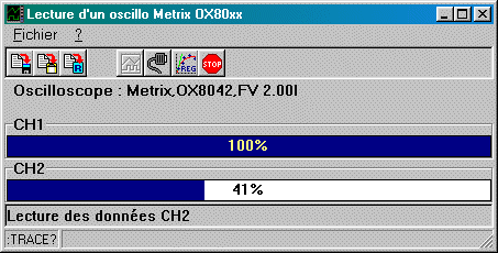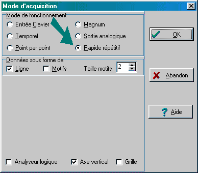 (2) Accessible seulement pour des signaux périodiques et "propres", à condition d'avoir les dernières versions du logiciel Regressi pour GTS2 (automne 02) (3) Le nombre de points transmis dépend en réalité de l'oscilloscope: 1000 pour les Métrix, 1024 pour le HP 54600, 4000 pour les Hameg, etc.) |