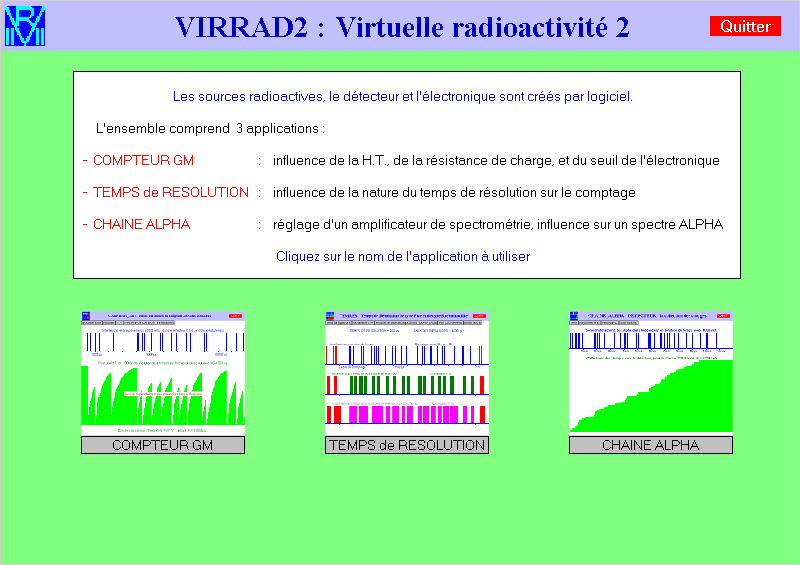 VIRRAD 2 est composé de 3 modules indépendants permettant de travailler sur les activités suivantes :